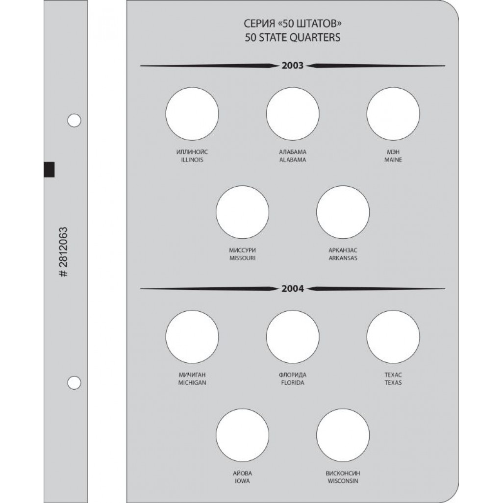 Альбом предназначен для коллекционирования монет достоинством 25 центов США серии «50 штатов», выпускавшихся с 1999 по 2008 год и монет серии